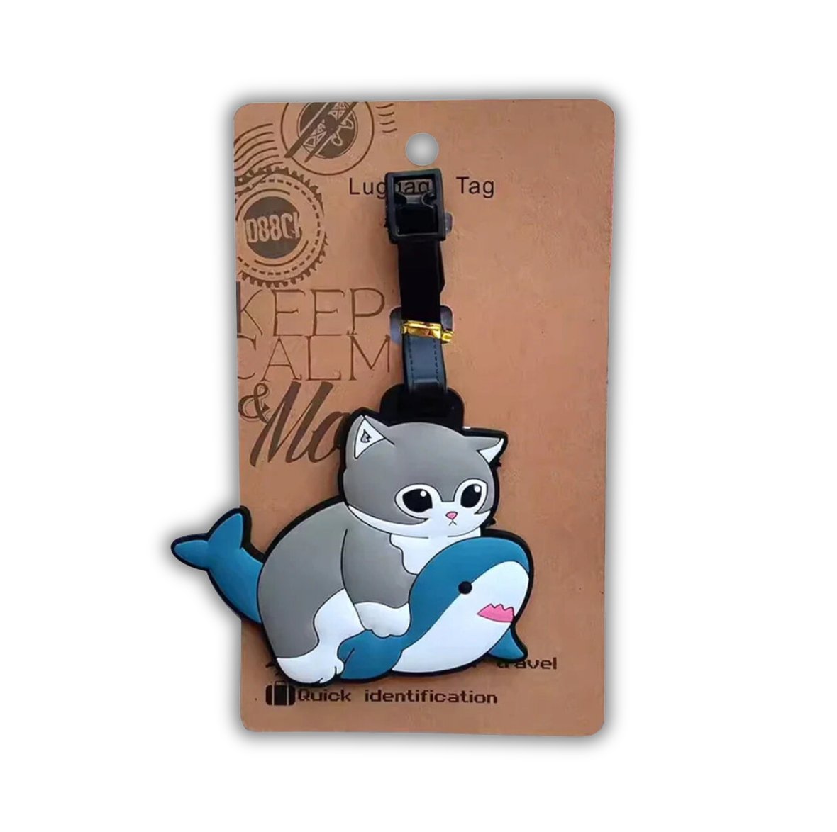 The Tag Buddy features an adorable Kawaii Shark Cat design that adds a playful touch to your luggage. Its vibrant colors and cute shape make it a standout accessory for any traveler.